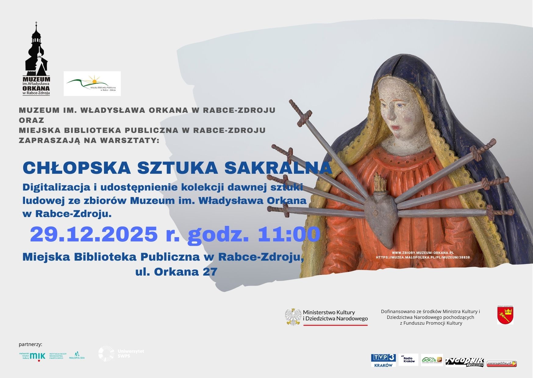 Dyrektor Muzeum Zbigniew Wójciak i Artystka Małgorzata Ewa Czernik zapraszają na wernisaż wystawy malarstwa pt. „Wędrowanie ku Bogu”, który odbędzie się 21 kwietnia 2023 roku o godz. 18.00 w budynku ekspozycyjnym Muzeum (drewniany XVII w. kościół).